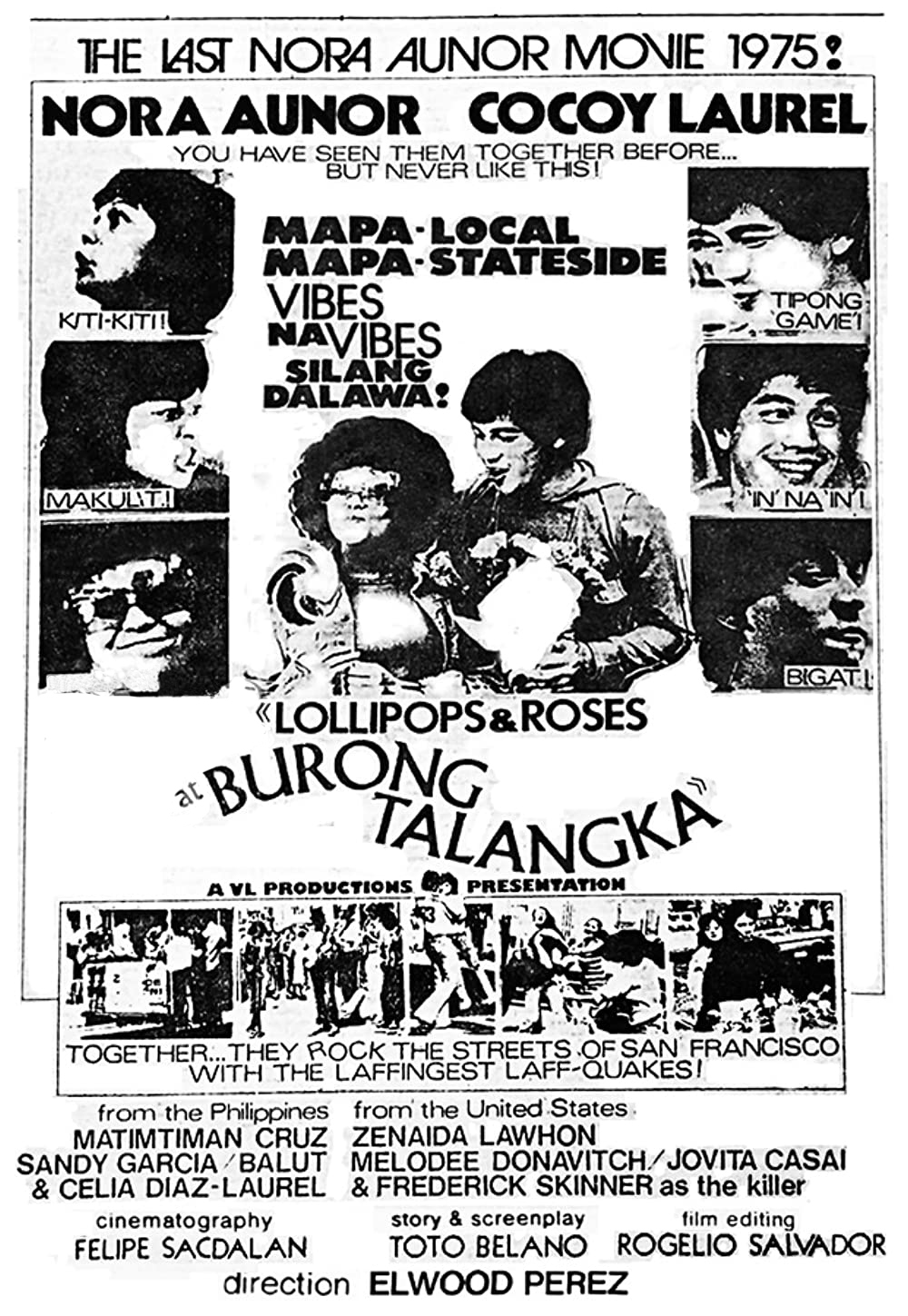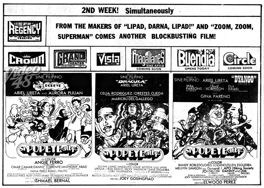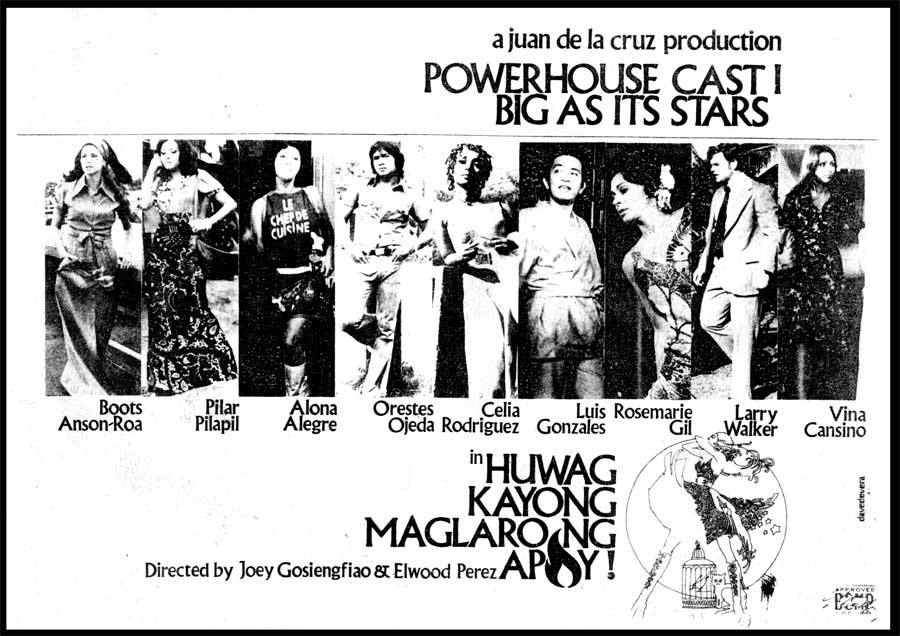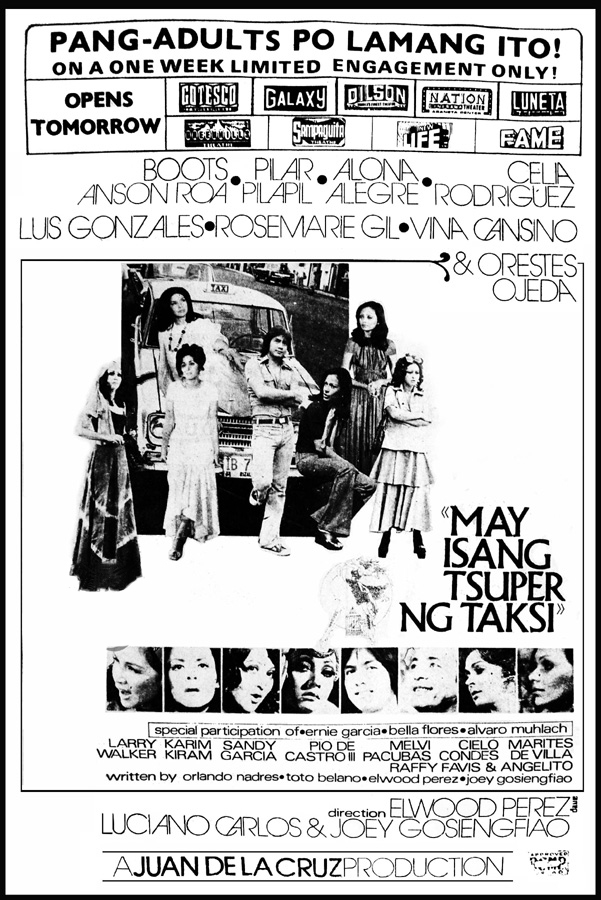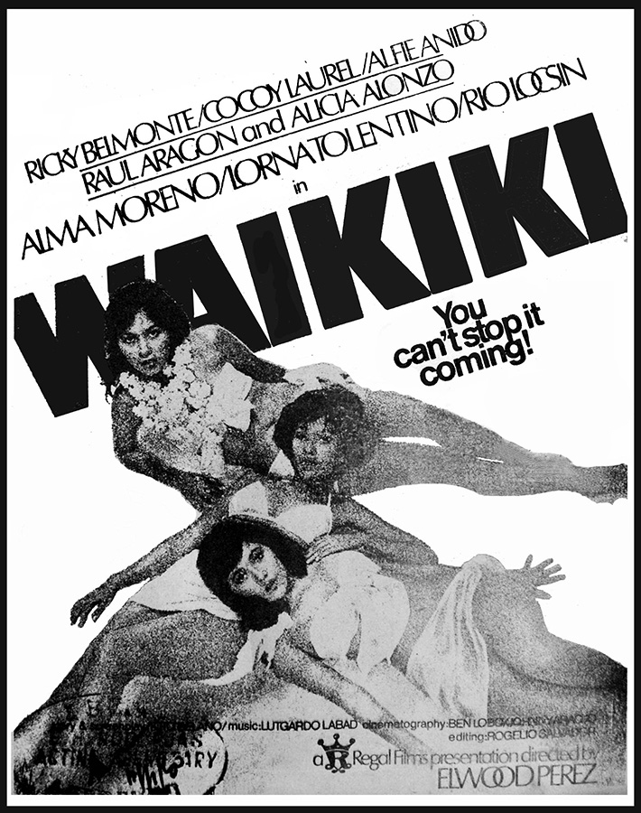 A Goldoni style comedy that revolves around poverty-stricken girl (Trixia Gomez), who joins the cabaret (a dance hall with taxi dancers) to survive and to support her younger sister (Andrea Bautista, the producer’s daughter) and brother (the child Bong Revilla, an action superstar and current Philippine Senator). This movie launched the movie careers of Gomez and Rico J. Puno, the current singing sensation. Vivian Velez was discovered and eventually became a major player in the industry as a producer and a star. Others in the cast are Marlon Ramirez, Anita Linda, Bella Flores, Angie Ferro, and Marissa Delgado. Presumed as a lost film until film buff and collector Jojo Devera found and partially restored the title in 2020. An anonymous donor who’s also a collector, gave Devera a DVD copy culled from U-matic tapes. The partially restored “Inday Garutay” is part of the PFA’s Elwood Perez Retrospective on the FDCP Channel.