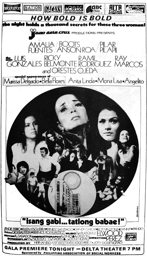 Three women -- Amalia Fuentes plays a bored socialite who seduces her stepson (Orestes Ojeda); Boots Anson-Roa plays a laundry woman, a rape victim who falls for her tormentor (Ray Marcos), and Pilar Pilapil plays a haughty model who pretends to be rich—a social climber.