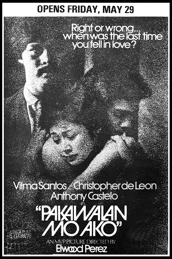 This 40th anniversary presentation was a smashing success at the box office. Christopher de Leon plays the sacrificing adopted son and Mat Ranillo III as the wayward real son of wealthy couple Anita Linda and Amado Cortez, are rivals over achievements and the love of a social-climber, Vilma Santos. All three were nominated for their performances, Mat Ranillo III won the FAMAS Best Supporting Actor award. Others in the cast are Lily Miraflor and Ma-an Hontiveros, in her big-screen debut. Its English-dubbed version, My Brother, My Wife, was entered in the Asia-Pacific International Film Festival in Taipei and the ASEAN Film Festival in Sydney, Australia.