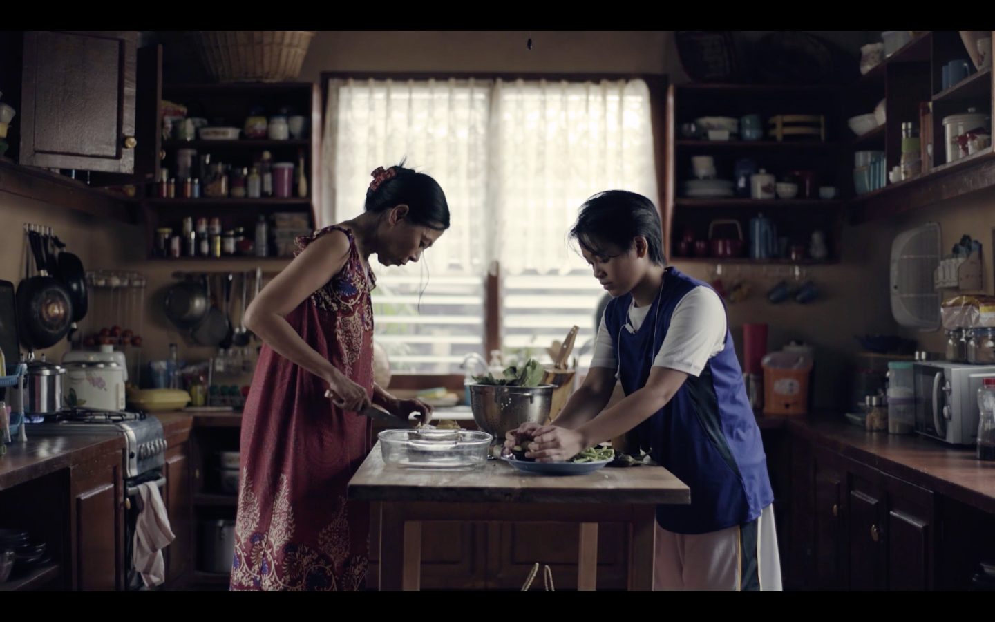 Kim Timan and Sam Villa-Real’s “Noontime Drama” is set in a single morning shared by a mother named Sona (Susan Africa) and her daughter Leslie (Zan Donato). The mother prepares Kare-Kare while listening to a noontime radio drama while an unfocused Leslie not too skilfully helps out.